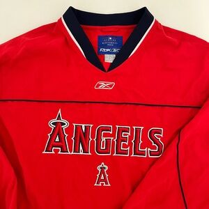VTG Reebok MLB Mens XL Pullover Windbreaker Jacket Baseball Red Anaheim Angels