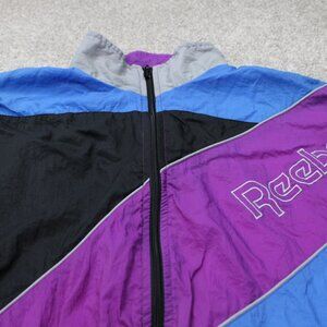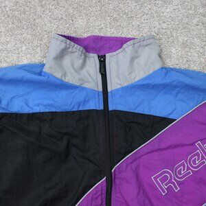 VTG Reebok Windbreaker Mens Medium Purple/Blue/Black Spell Out Jacket Coat