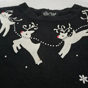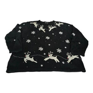 VTG Reference Point Petite Sz 2X Christmas Sweater Black Pullover with Reindeer
