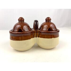 Nice stoneware small condiment servers with lids.