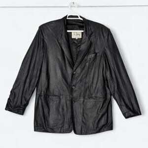 VTG Remy Black Soft Leather Blazer Men's 44 Soft Leather Rocker Western Jacket
