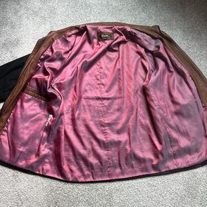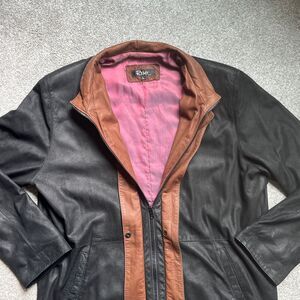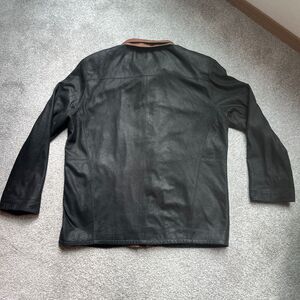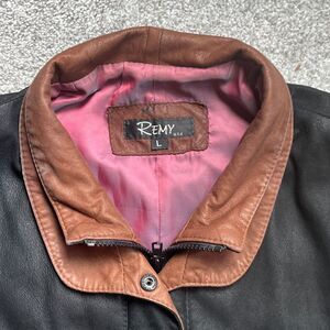 VTG Remy Soft Leather Jacket, Double Collar, Black with Brown, Mens Size Large