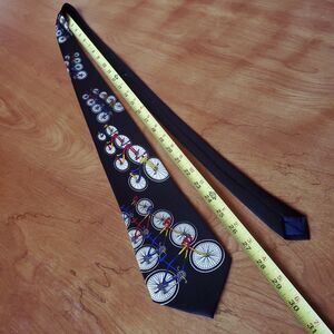 VTG Renaissance Hand Made Tie Black 58" x 4" Bicycles Cycling Cyclist Necktie