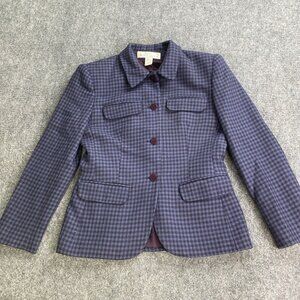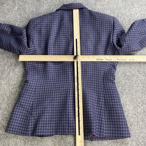 VTG Rene Rowan Saville Jacket Women's 8P Blue Houndstooth Worsted Wool Distress