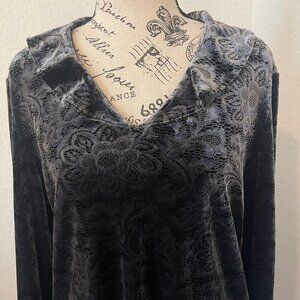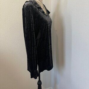 VTG Requirements Womens Blouse Black Velvet Floral Medium Goth Romantic Dark y2k