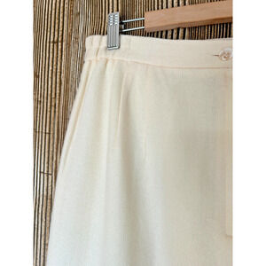 This vintage Sag Harbor Wool Pencil Skirt in size 16 features a classic solid ivory color, mid-rise waist, and a knee-length hem, perfect for a preppy and minimalist look. Made of wool tweed fabric, this skirt has a zip closure and is ideal for various occasions such as parties, casual wear, or business meetings. With features like being lined, having a slit, and an elastic waist, this skirt offers both style and comfort, making it a versatile and chic addition to any woman's wardrobe. Please see measurement photo. Excellent condition.