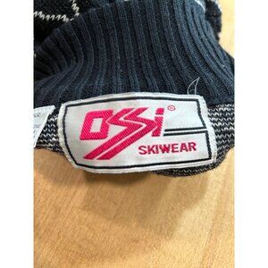 Experience the bold, vibrant colors of the 80s with this vintage Ossi knit ski sweater. Featuring prominent shoulder pads and a wool blend fabric, this retro piece captures the unique style of the decade.