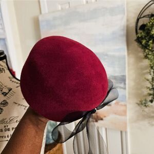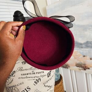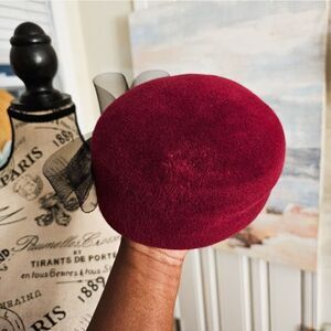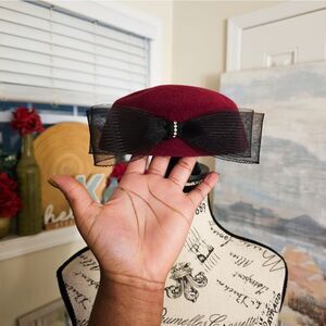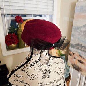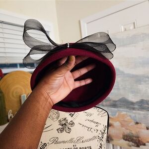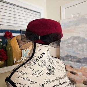 VTG Retro Wool Felt Mesh Bow Accent Pillbox Stylish Beret Hat.