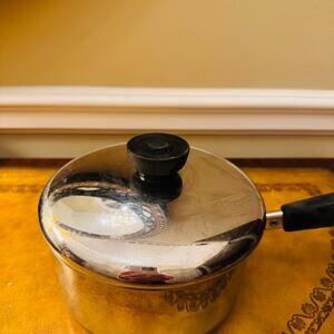 VTG Revere Ware Copper Clad Bottom 1.5 Quart Stainless Steel Sauce Pan w Lid USA