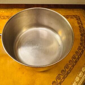 Add a touch of vintage charm to your kitchen with this Revere Ware 1.5 Quart Stainless Steel Saucepan. The round-shaped, two-piece set includes a copper-clad bottom and lid, making it compatible with both electric and gas stoves. The item diameter is 6 inches, and it stands at a height of 3 inches. Crafted in the United States, this original piece features a stainless steel surface coating and is perfect for collectors of antique cookware. The set includes a saucepan and lid, and is ideal for preparing your favorite sauces and soups. Add a touch of classic elegance to your kitchen with this Revere Ware saucepan. There are no dents. There is slight crack in the top but is in tact and functional.
