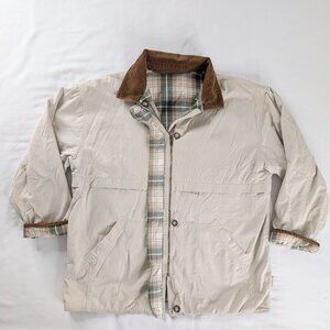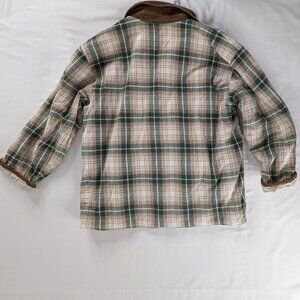 VTG Reversible Green Cream Brown Plaid Khaki Collared Chore Coat Barn Jacket