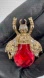 VTG Rhinestone Beetle Brooch Red Jewel Gold Tone Bug Insect Pin Pave Crystal