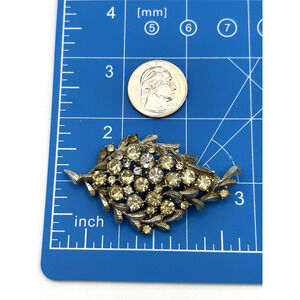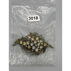 VTG Rhinestone Brooch Clear Round Stones Leaf Shape J1-3018