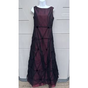 VTG Rickie Freeman Evening Gown Black Red Mesh Overlay Vamp Whimsigoth Gothic 8