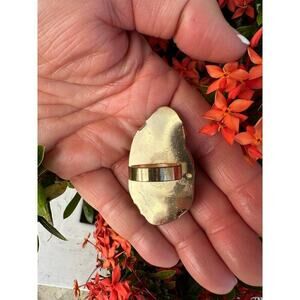 VTG Ring Coral Statement Ring Sz 4 Large Cocktail Ring Agate? Coral?Plastic?- This unique piece, with a non-adjustable gold ring, is a striking statement. Despite its appearance, it's a costume piece. The top measures 2" in length and 1 1/4" in width.