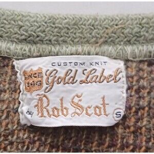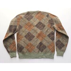 The Vintage Rob Scot Mohair Blend V Neck Sweater in Olive Green/Brown Argyle is a stylish and retro addition to any wardrobe. Made from a blend of mohair, wool, and acrylic, in a classic color combination of olive green, brown and rust , this sweater features a V-neck design and long sleeves, making it perfect for casual occasions. The argyle pattern adds a touch of sophistication, while the vintage Rob Scot brand adds a unique and timeless appeal. A regular fit and size S for men, will fit size M for women. Pit to pit 20", length 24", sleeve top of shoulder to hem 24.5". Vintage sweater, clean, no stains, rips or odors.