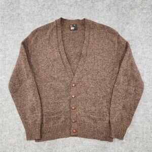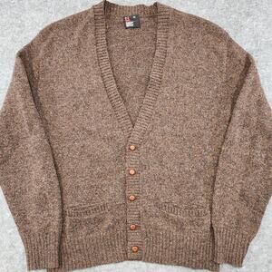 VTG Robert Bruce Mens XL Wool Knit Brown Preppy Cardigan Sweater USA Union Made