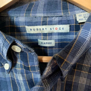VTG Robert Stock Mens Button Down Shirt XL Blue Plaid Button Down Western Cowboy