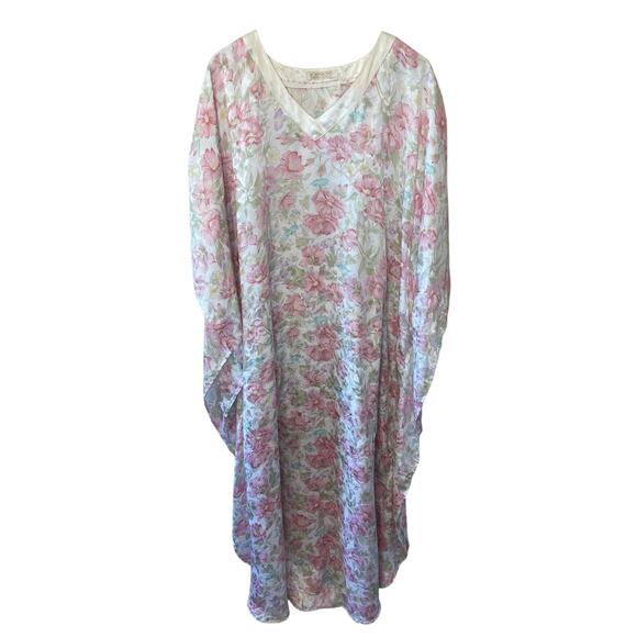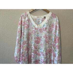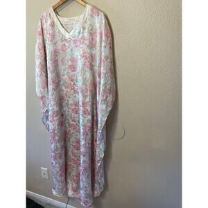 VTG Robinson’s Pink & Blue Floral Silky V Neck Long MuMu Grandma Nightgown Large