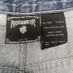 VTG RocaWear Denim Shorts Men's 42(39) x 13 Blue Classic Fit Baggy Y2K Embroider