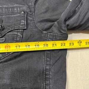 VTG Rock Revival Jacket Men Large Black Distressed Studded Embroidered Y2K Denim See pictures for reference and measurements