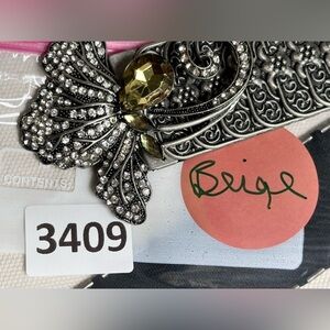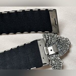 VTG Rocker Biker Metal Accented Belt Stretch Hook Enamel Rhinestone Buckle 3409