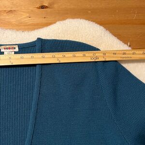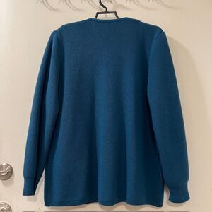 VTG Rodier Teal Blue Wool Blend LS Padded Button Cardigan Sweater Size Large