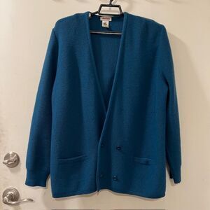 VTG Rodier Teal Blue Wool Blend Long Sleeve Padded Button Cardigan Sweater Size Large