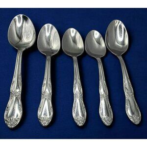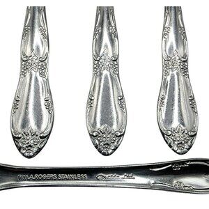 This set of Oneida William Rogers stainless steel soup spoons and teaspoons showcases intricate floral detailing for a refined table presentation.