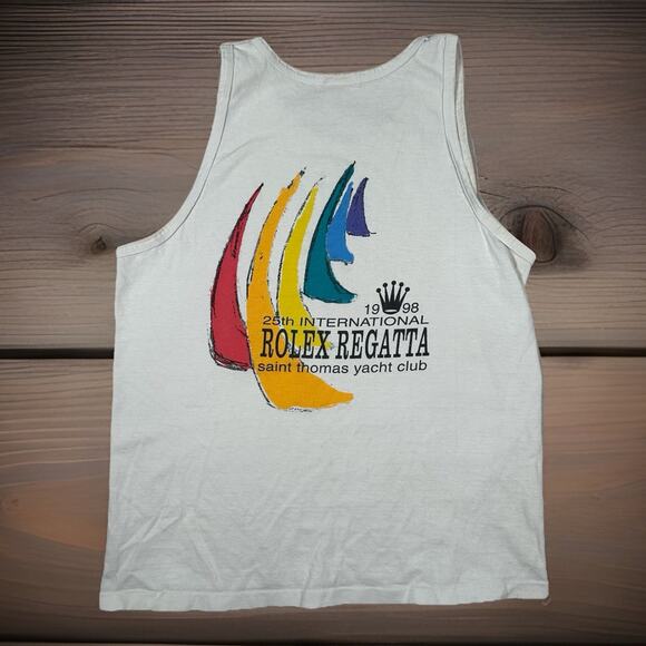 VTG Rolex Regatta Tank Top Shirt Men’s Size M White 1988 St Thomas Yacht Club