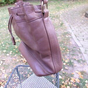 VTG Rolfs Y2K Brown Leather Cinch Drawstring Bucket Handbag Shoulder Bag Purse