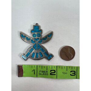 VTG Roma Knifewing Dancer Kachina Zuni Faux Turquoise Inlay Pendant Silver Plate