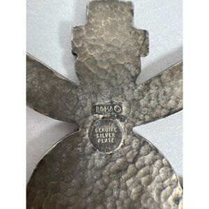 Cool Vintage Knifewing Kachina Dancer Pendant for Necklace. Native American Style Signed Silver Plate and Roma. The pendant has a Zuni Kachina design with inlaid enamel. It measures approximately 2” long by 2” wide. This is signed on the back, Roma (a company in 1963) and also signed Genuine Silver Plate.