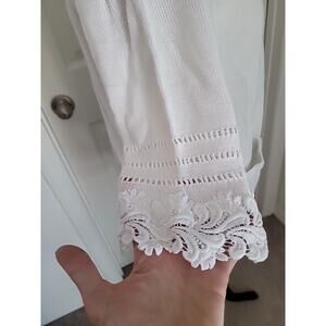 VTG Romantic Cottagecore Knit Crochet Ivory Cardigan + Crop Blouse M EUC