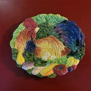 VTG Rooster Platter Colorful Ceramic Wall Hanging Decor Plate Fitz & Floyd