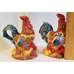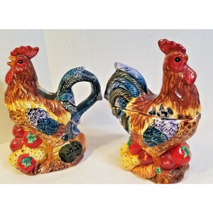 VTG. Rooster Sugar & Creamer PItcher Handpainted CeramicFarmhouse/Granny Core