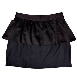 VTG Rory Beca Peplum Mini Skirt Sz.S Black Silk Black Minimalist Goth Coquette