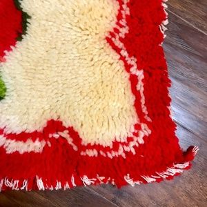 Vintage Shabby Chic Boho Rose/Floral Latch Hook Red Shag Rug / Wall Hanging 25" x 20"