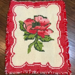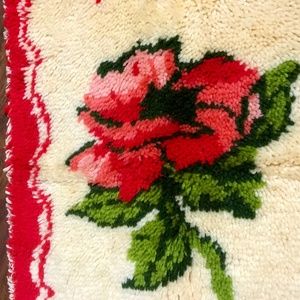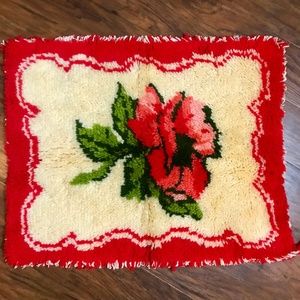 VTG Rose Latch Hook Rug Wall Hanging Boho Chic