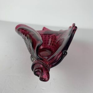 Vintage Rossi Glass Cranberry Dish Fine Art Glass Hand Blown Signed Rare Red