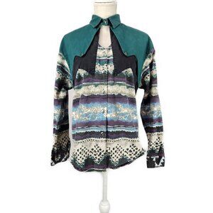 VTG Rough Rider Circle T Western Button Up Shirt Women's Sm Keyhole Rodeo Read