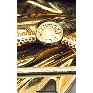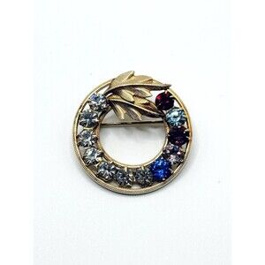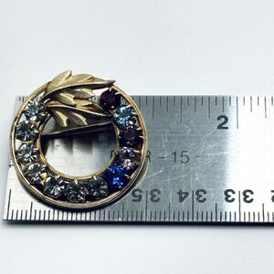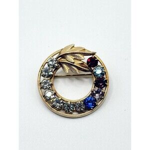 VTG Round Sparkling Rhinestone Brooch Pin Multicolor 2 Circle Leaf GF Signed