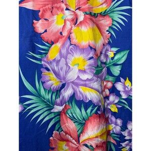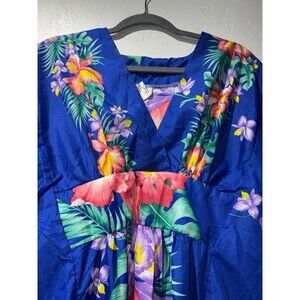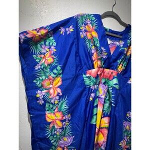 VTG Royal Creation Hawaii Blue Floral kaftan Kimono House Dress MuMu Hibiscus OS