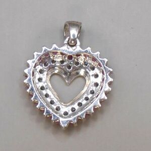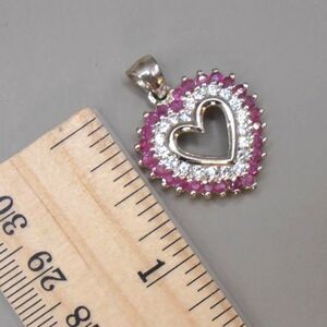 VTG Ruby & White Tourmaline Heart Pendant 925 Thai – Silver Plated, 3/4"
