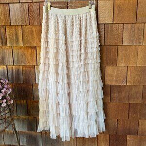 VTG Ruffled Tulle Latte Midi Skirt with Elastic Waist in Women's Large