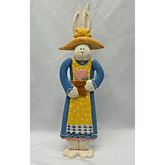 VTG Russ Berrie 10.5" Spring Easter Bunny Resin Rabbit Figure~Country~Farm~Folk