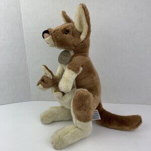 Yomiko Classics Plush Mommy & Baby Kangaroo Joey Soft Stuffed Animal 18" Ears to tip of tail - Russ. Condition is preowned