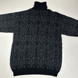 VTG Russ Studio Women Sweater Turtleneck Black Gray Paisley Wool Blend Sz M