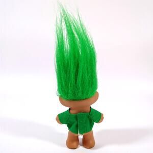 This vintage Russ Troll features a fun, festive "I LOVE THE IRISH" theme, perfect for St. Patrick's Day! Standing at just 3 inches tall, the troll has iconic green hair, sunglasses, and a playful expression. A charming collectible for any troll doll enthusiast or anyone celebrating Irish heritage, this doll brings some quirky fun to your holiday decor or collection!