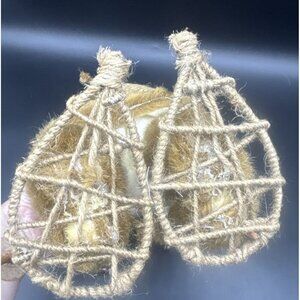 VTG Rustic Christmas St Nick Santa Claus w/ Snow Shoes Burlap Bag w/ Bird 13”